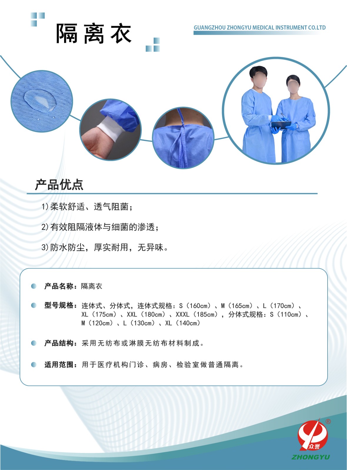 产品描述:采用无纺布或淋膜无纺布材料制成。用于医疗机构门诊、病房、检验室做普通隔离。